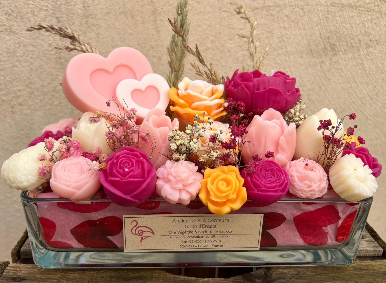 Pot verre bougie noire coeur rouge