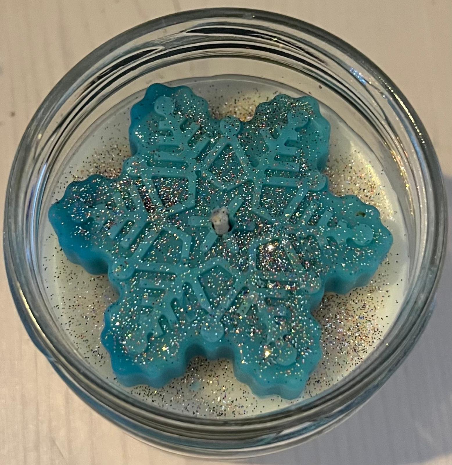 Bougie format L – Parfum délice interdit (dominante poire) – Couleur blanche & bleue