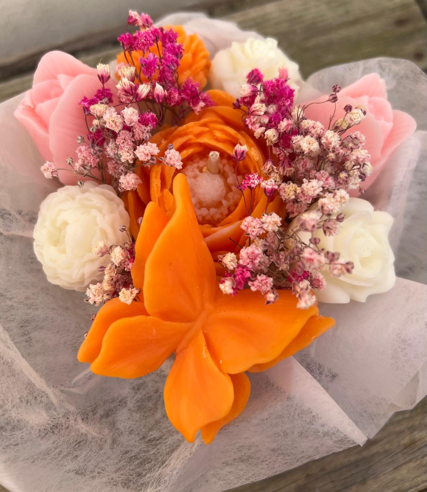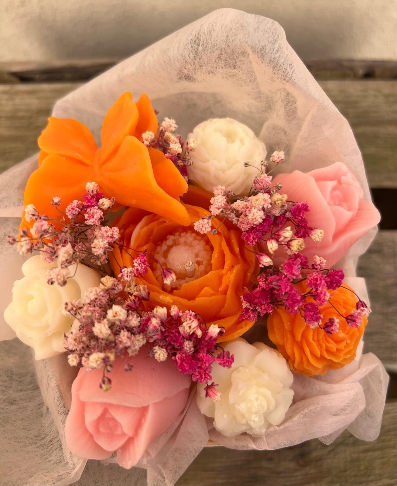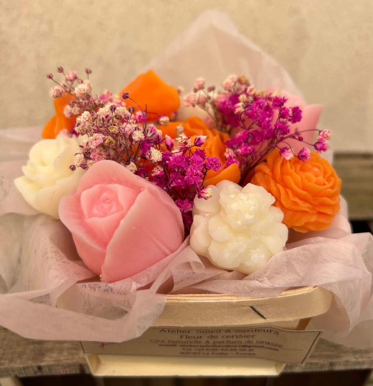 Bouquet fondants et mini bougies – Parfum nougat blanc